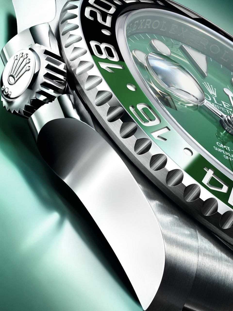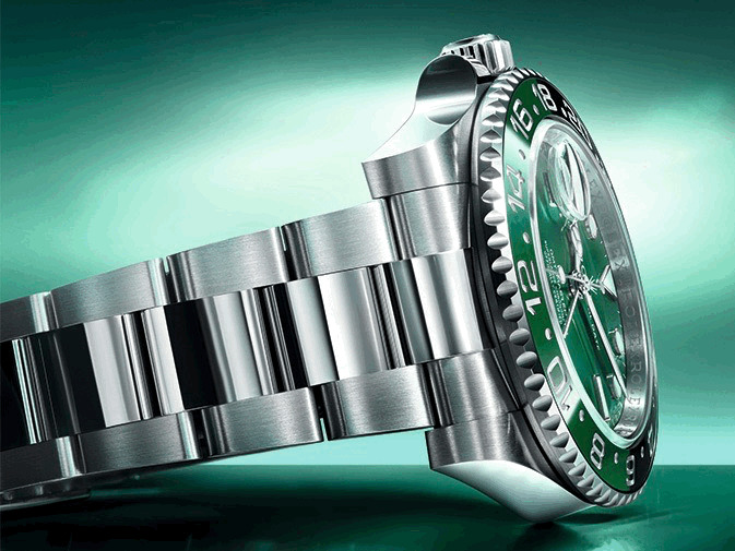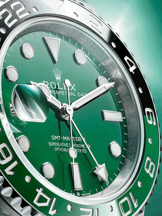 Cal.3285自動上鍊機芯、時,分,秒針指示、GMT第二地時間指示、放大日期窗、防水100米、動能儲存70小時