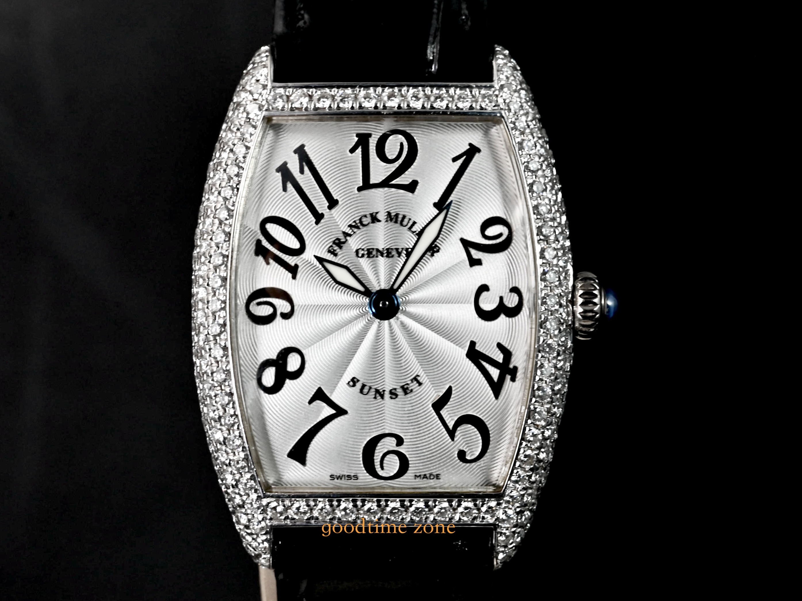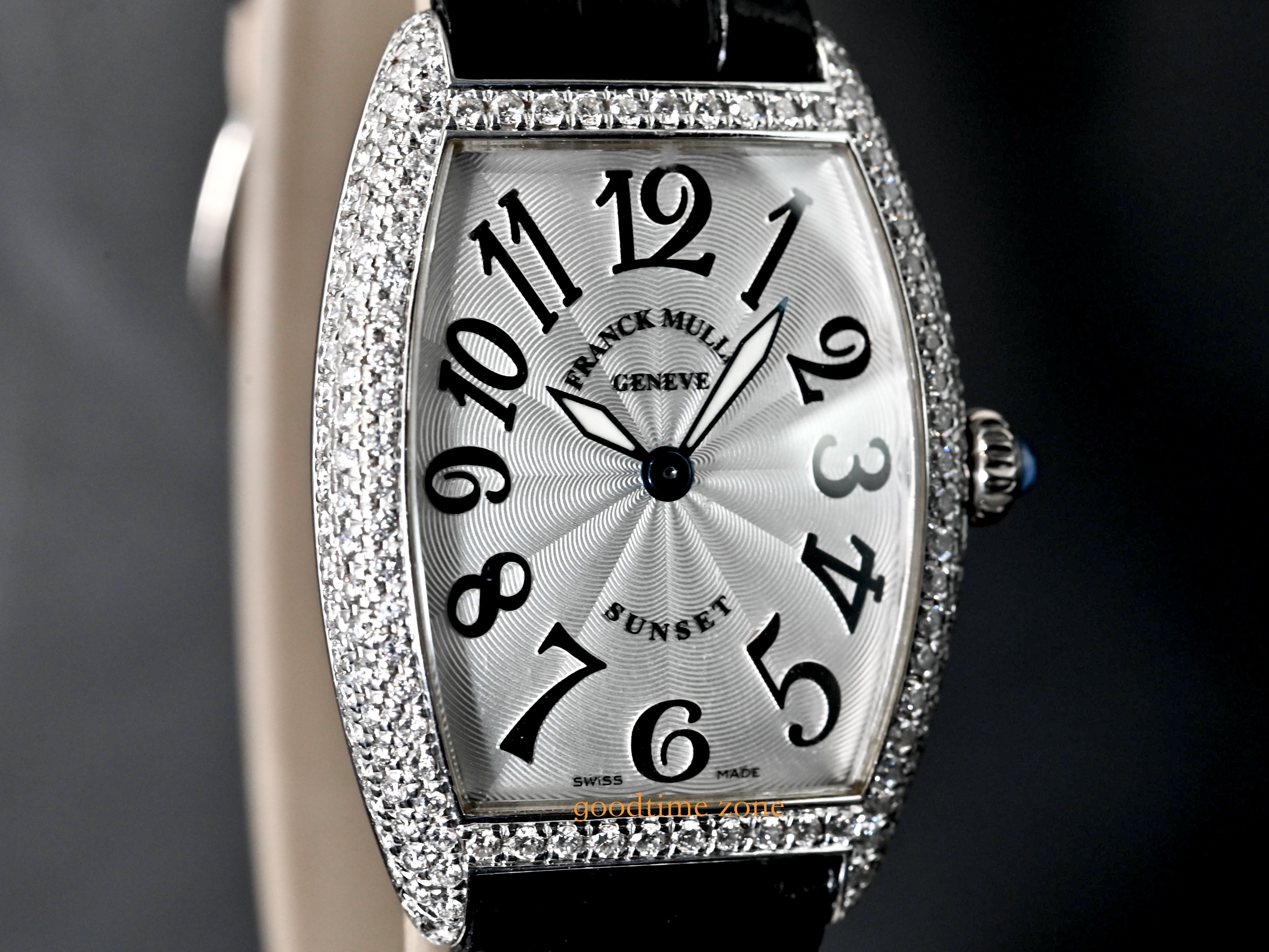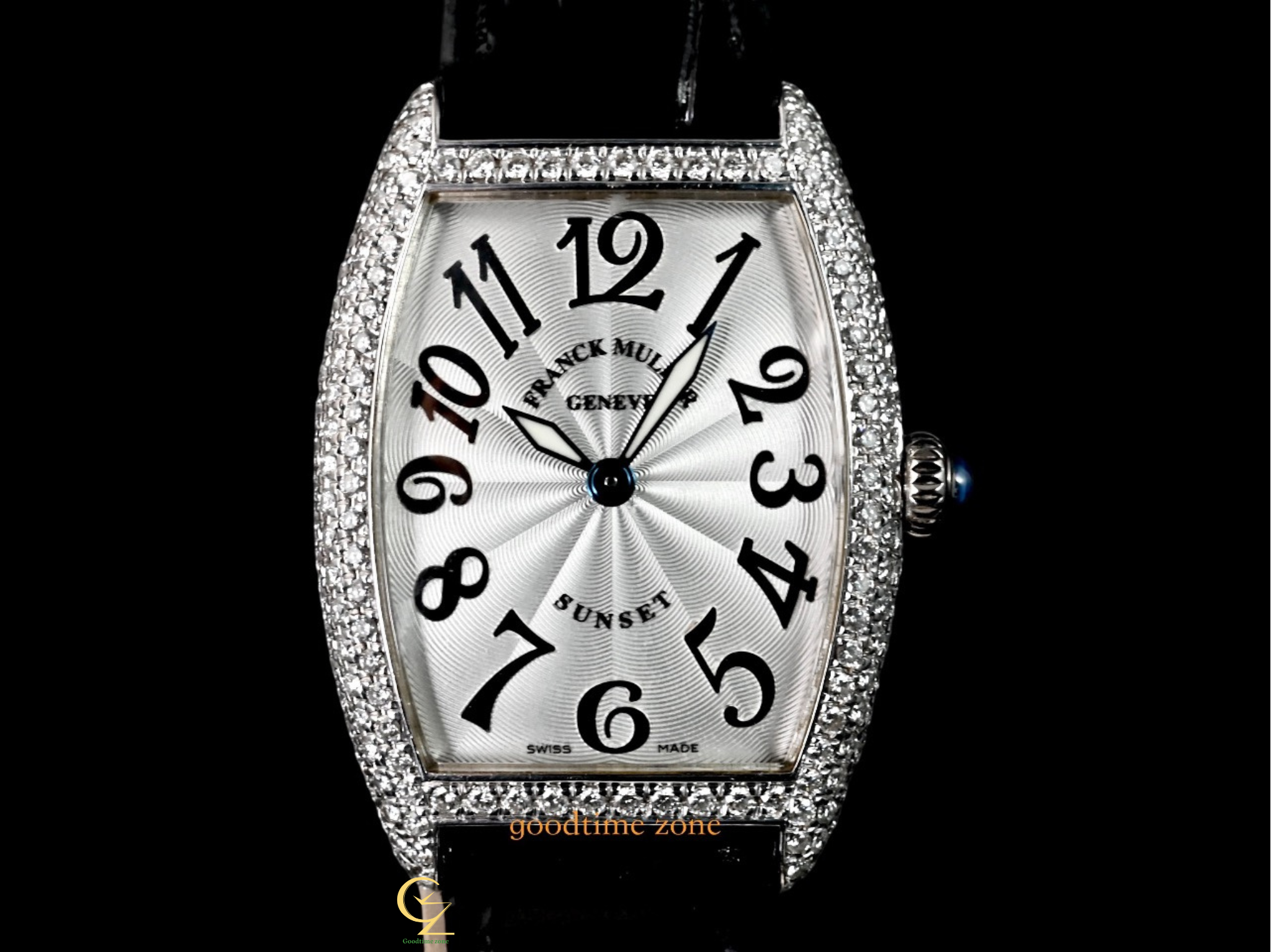 18K白金材質、銀白色放射紋面盤、精鑲鑽圈