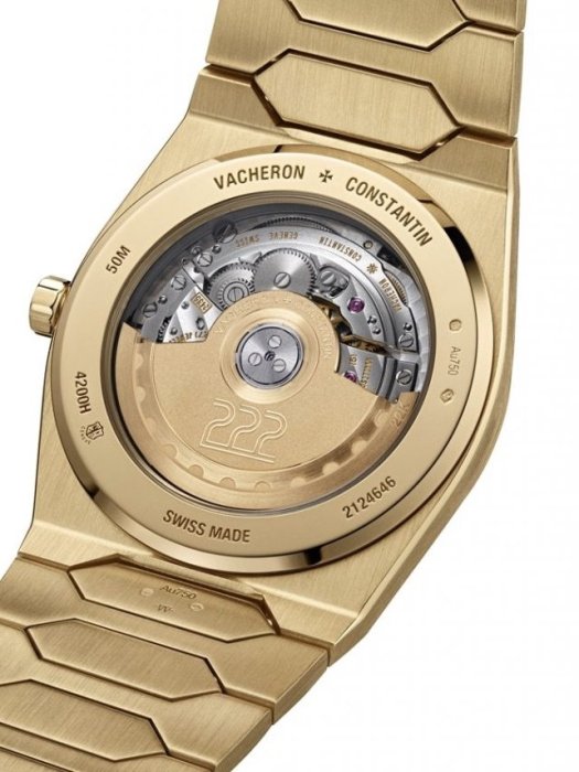 222原始型號為44018,它跟皇家橡樹一樣都被暱稱為“Jumbo”,因為手錶的錶徑37mm在當時屬於大尺寸,不過採用兩件式錶殼結構的44018生產週期,它只出了一年就停產,期間江詩丹頓製作了500只不鏽鋼版本、120只不鏽鋼與黃金的半金版本,以及100只黃金版本。2022年江詩丹頓選擇復刻的對象正是數量最少的黃金版,。。