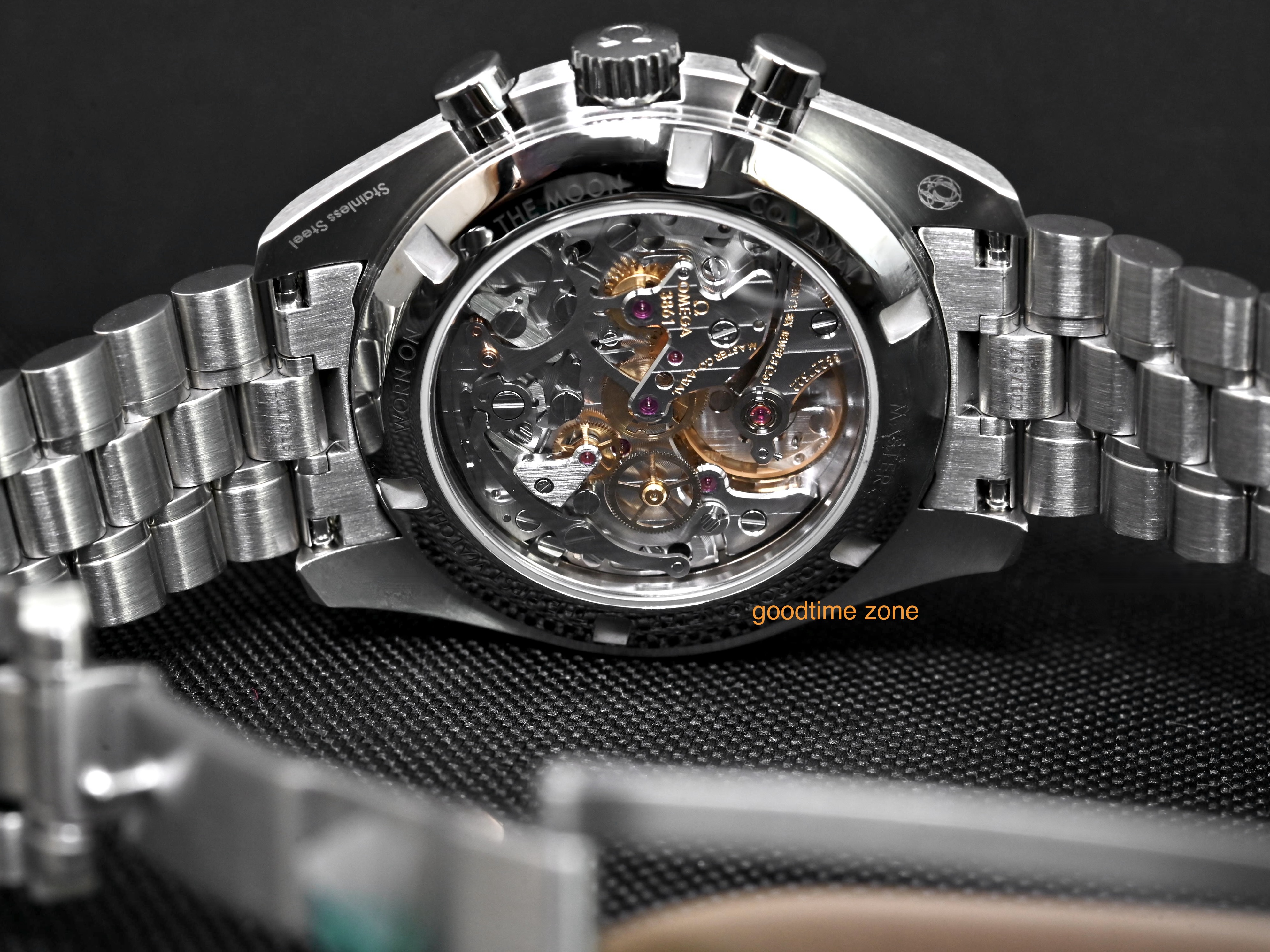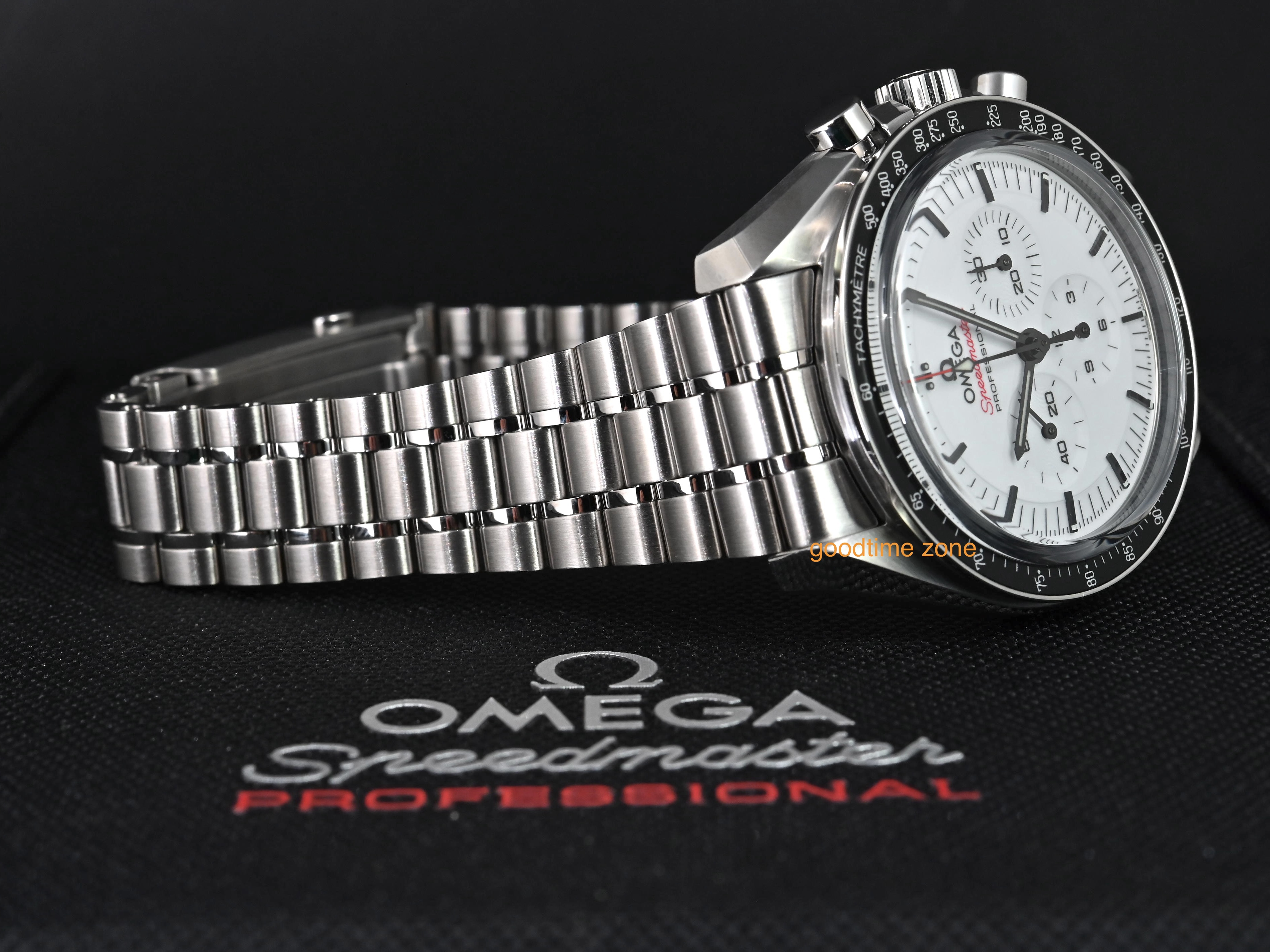 超霸登月錶是全球最具代表性的錶款之一。極具傳奇色彩的計時腕錶參與了全部六次登月任務,堪稱是品牌探險開創精神的楷模。 此42毫米不鏽鋼登月錶襯以每行五拱形鏈節的拋光及磨砂錶鏈,設有藍寶石水晶玻璃正面錶鏡及錶背。腕錶靈感源自曾於月球佩戴的第四代超霸腕錶風格,其設有不對稱錶殼、飾有歐米茄標誌的黑色錶盤,以及經陽極處理的鋁錶圈環飾有著名的「數字90上圓點」。 腕錶搭載歐米茄3861同軸擒縱大師天文台認證機芯,為小秒針副錶盤、30分鐘計時盤和12小時計時盤,以及中央計時功能提供動力。 備有同軸擒縱系統的手動上鍊計時機芯。獲瑞士聯邦計量 科學研究所(METAS)認可的大師天文台認證,可抵抗達15,000高斯的磁力。矽游絲材質無卡度游絲擺輪。鍍銠 飾面,橋板飾有直線日內瓦波紋。
