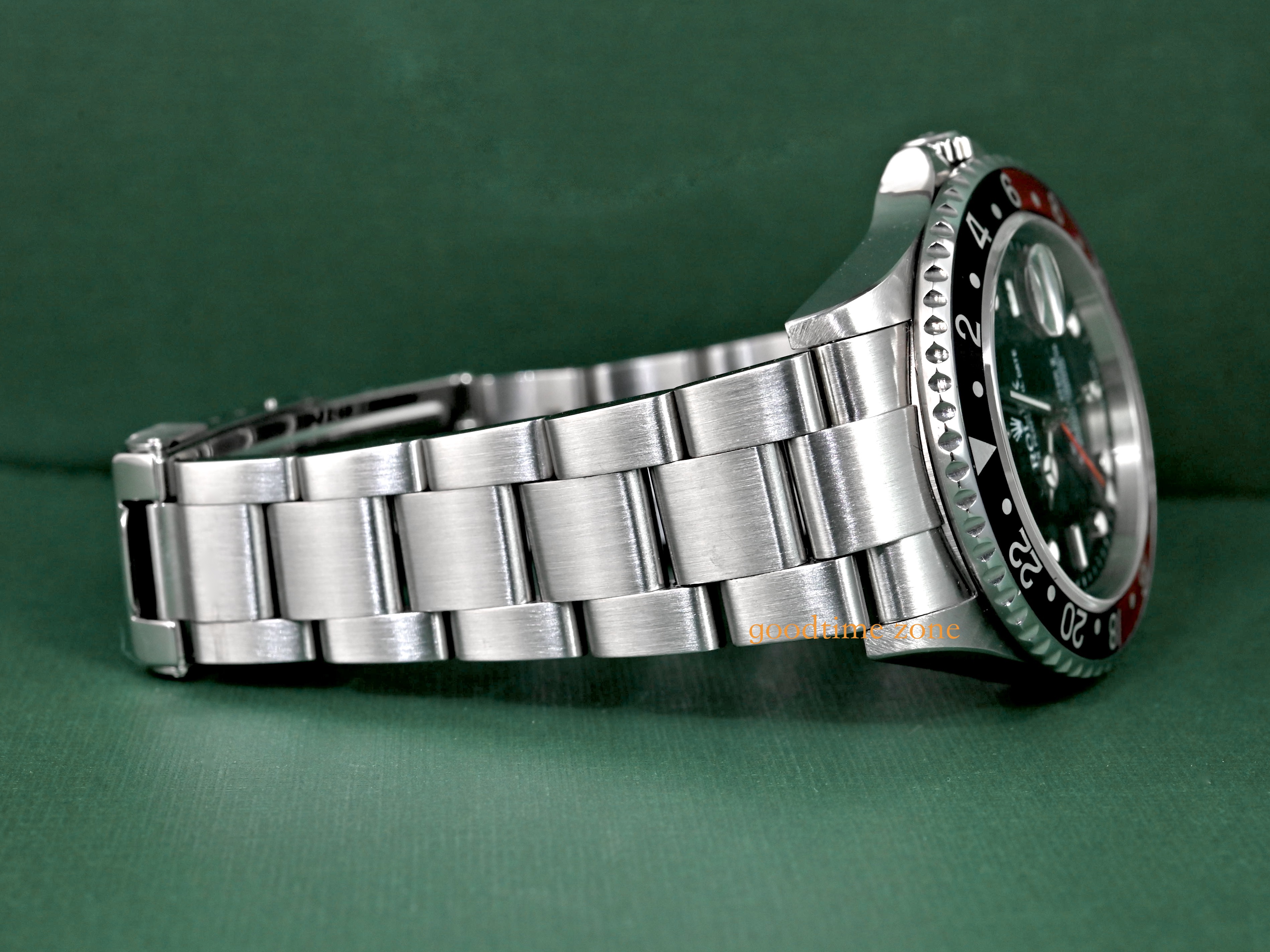 Cal. 3185自動上鍊機芯 時.分.秒針指示、日期窗顯示、GMT兩地時間指示