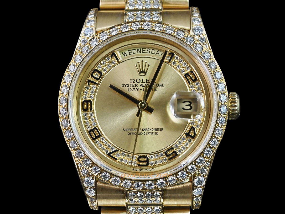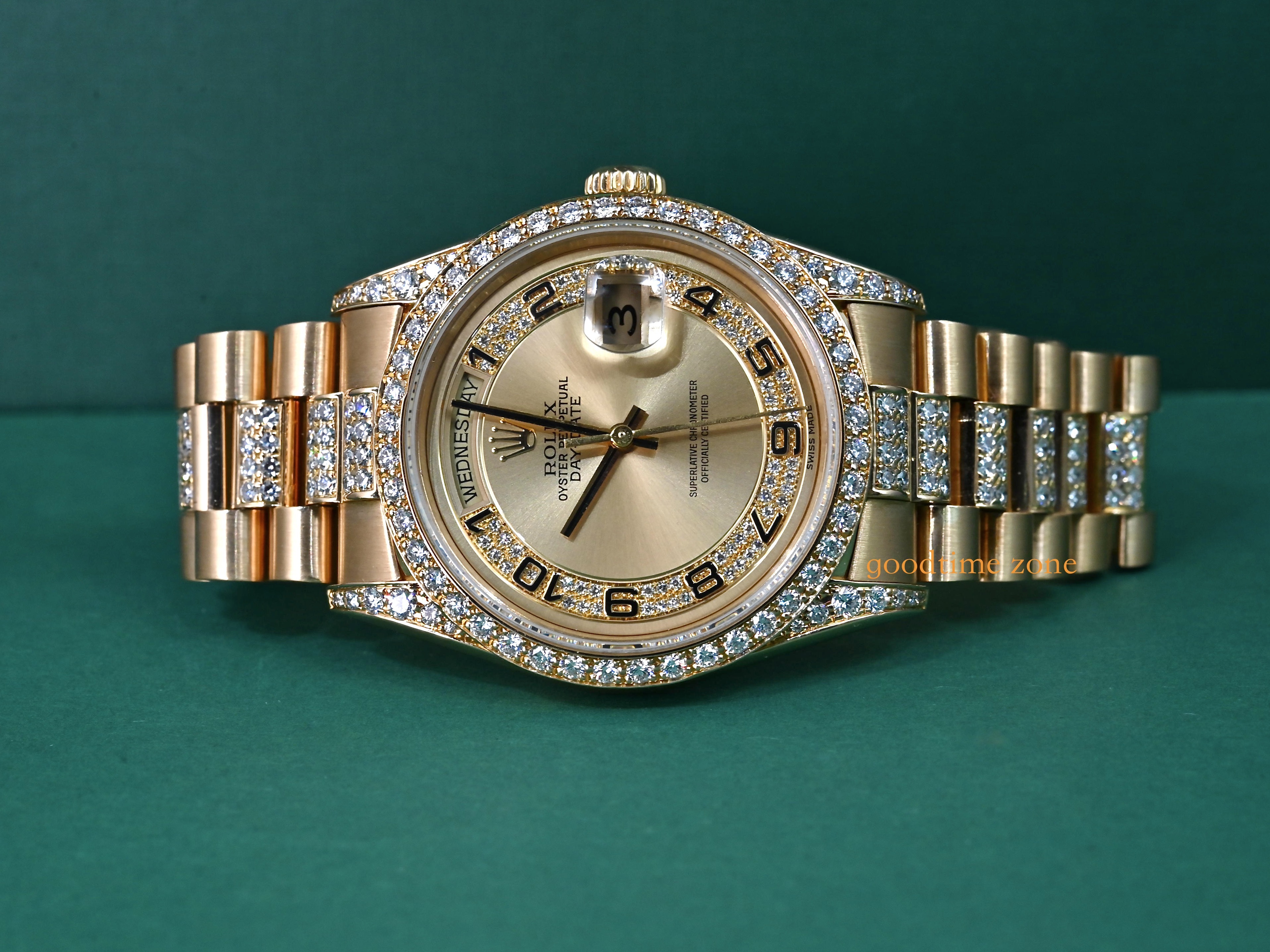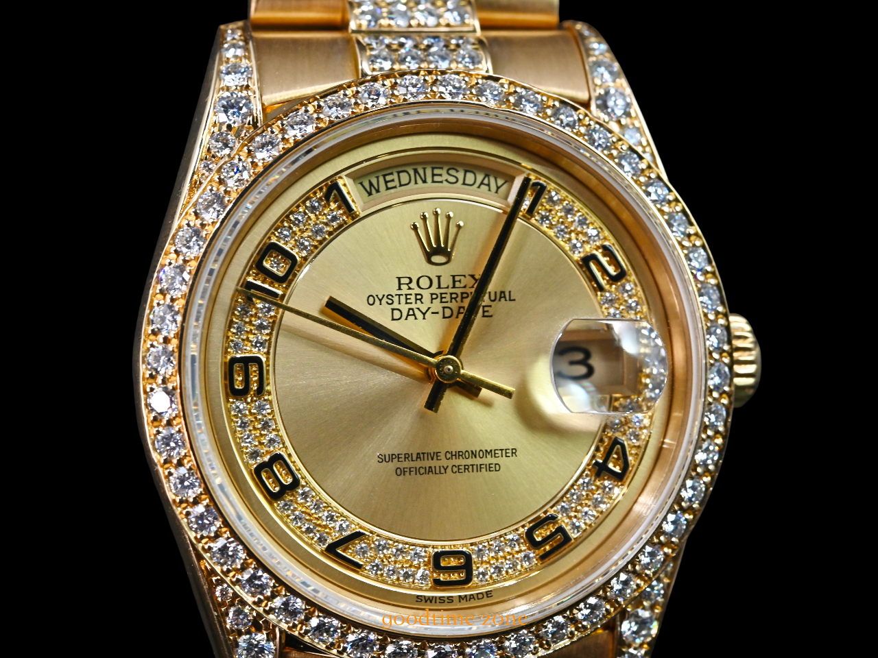 18K黃金材質、原鑲鑽圈鑽腳MA多層鑽面、精鑲中排鑽帶、藍寶石水晶玻璃