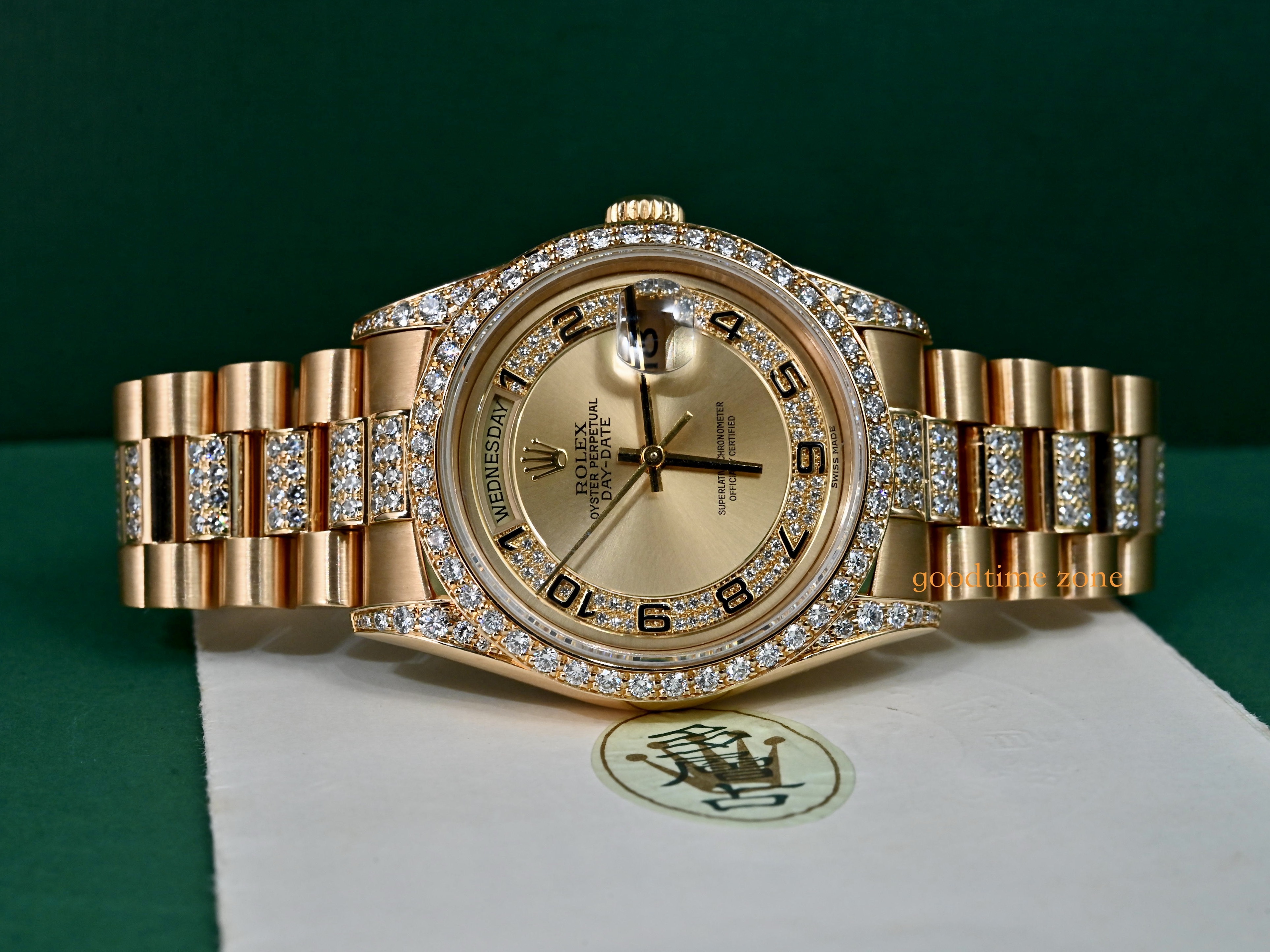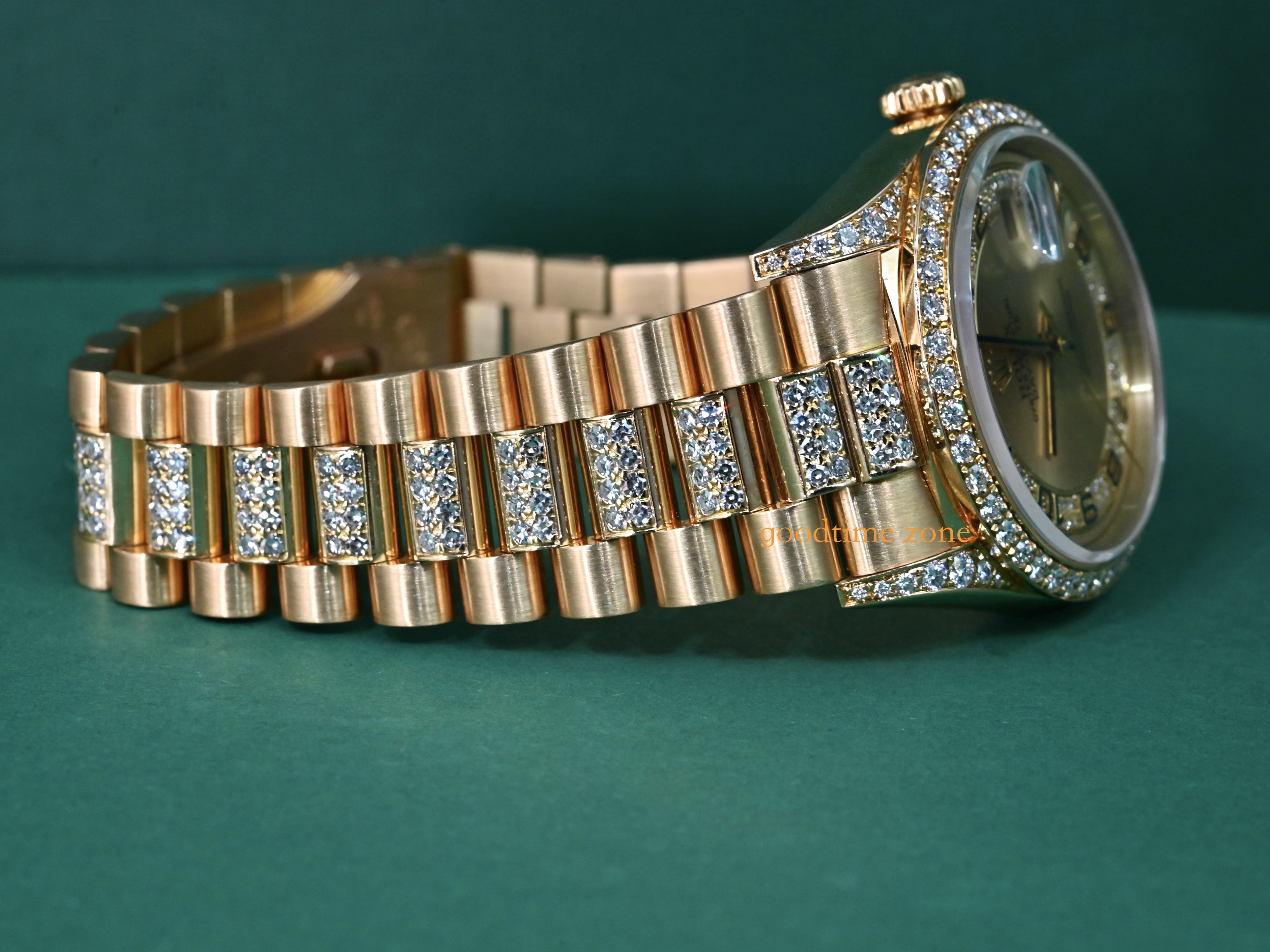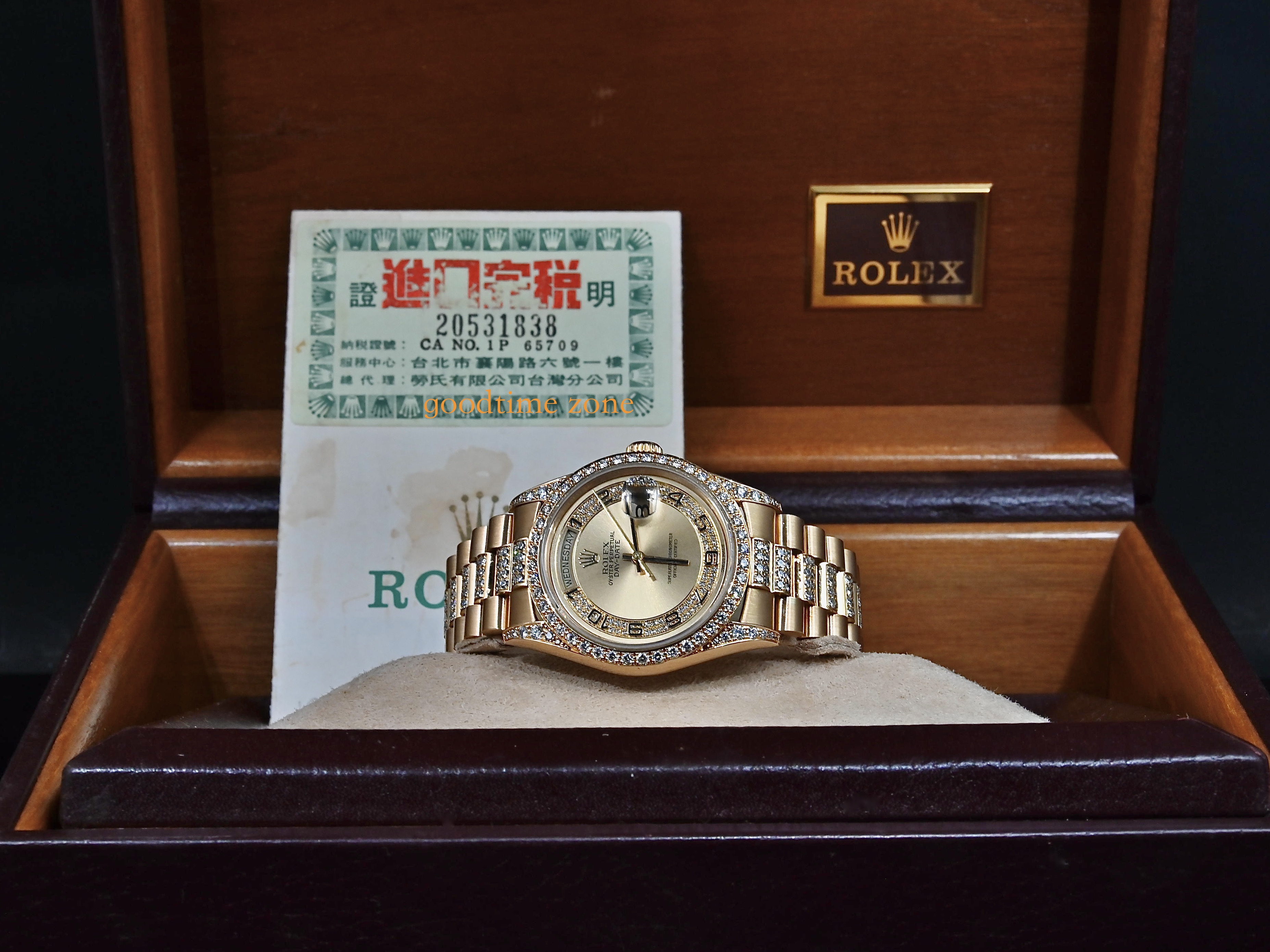 18K黃金材質、原鑲鑽圈鑽腳MA多層鑽面、精鑲中排鑽帶、藍寶石水晶玻璃