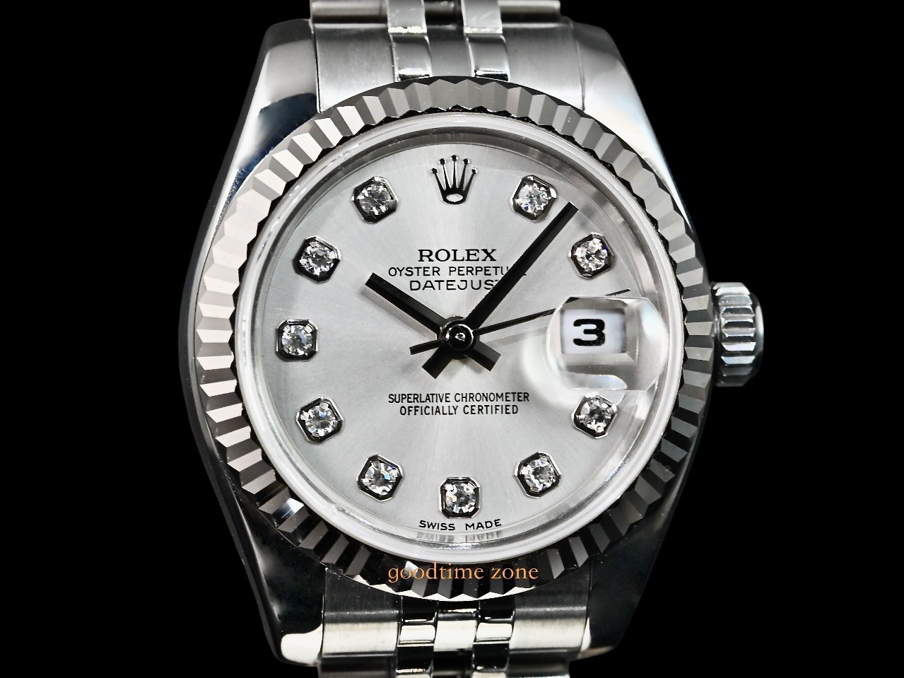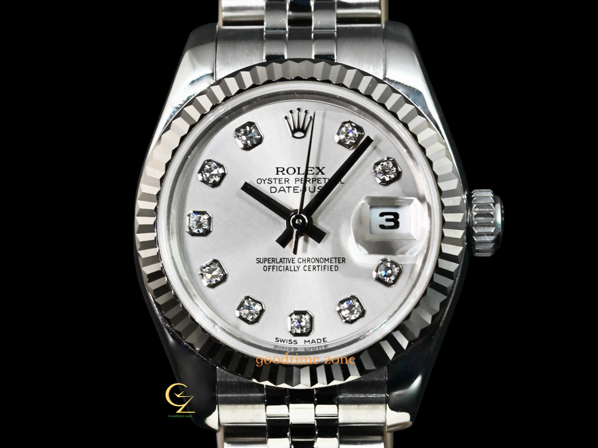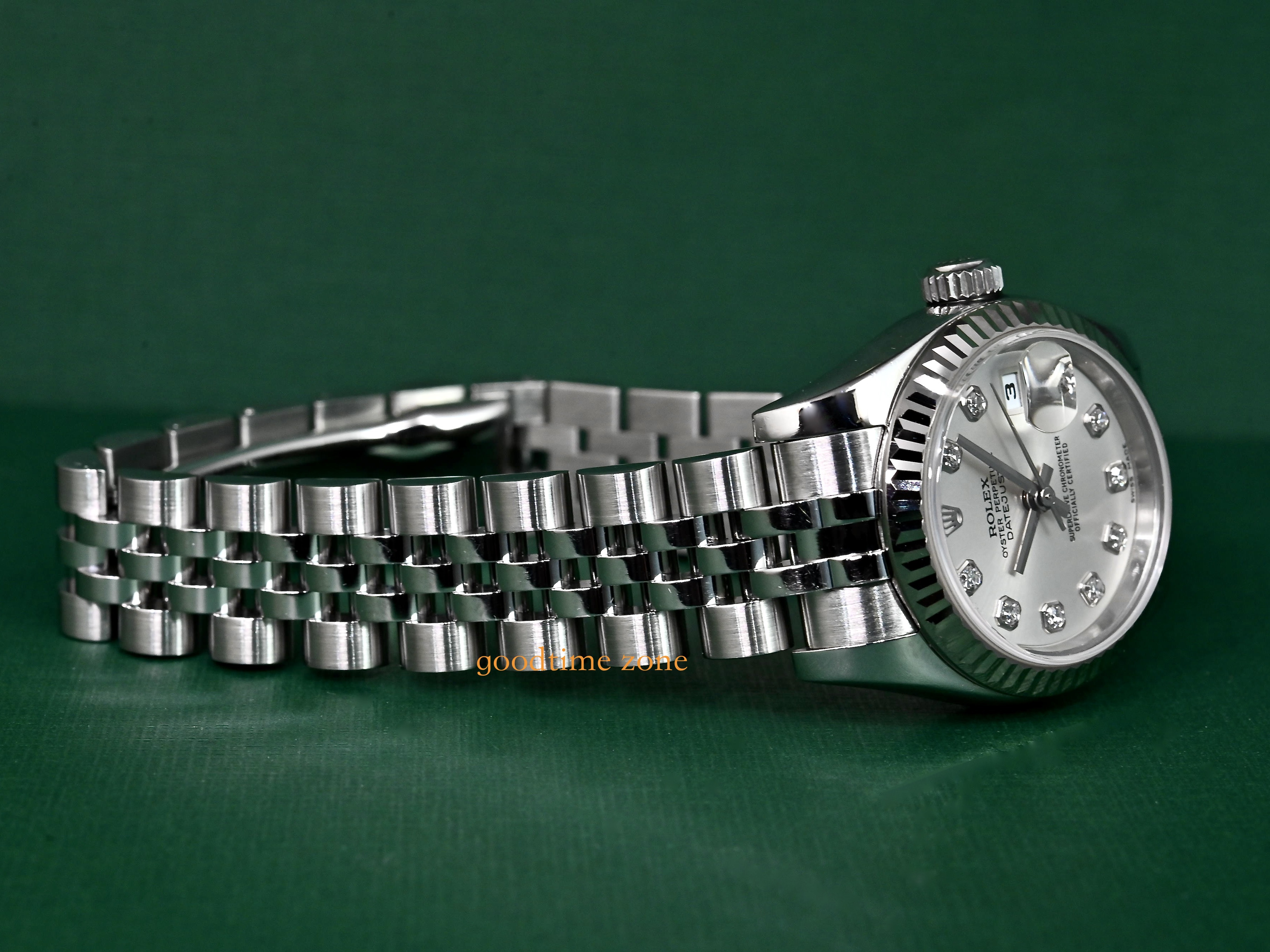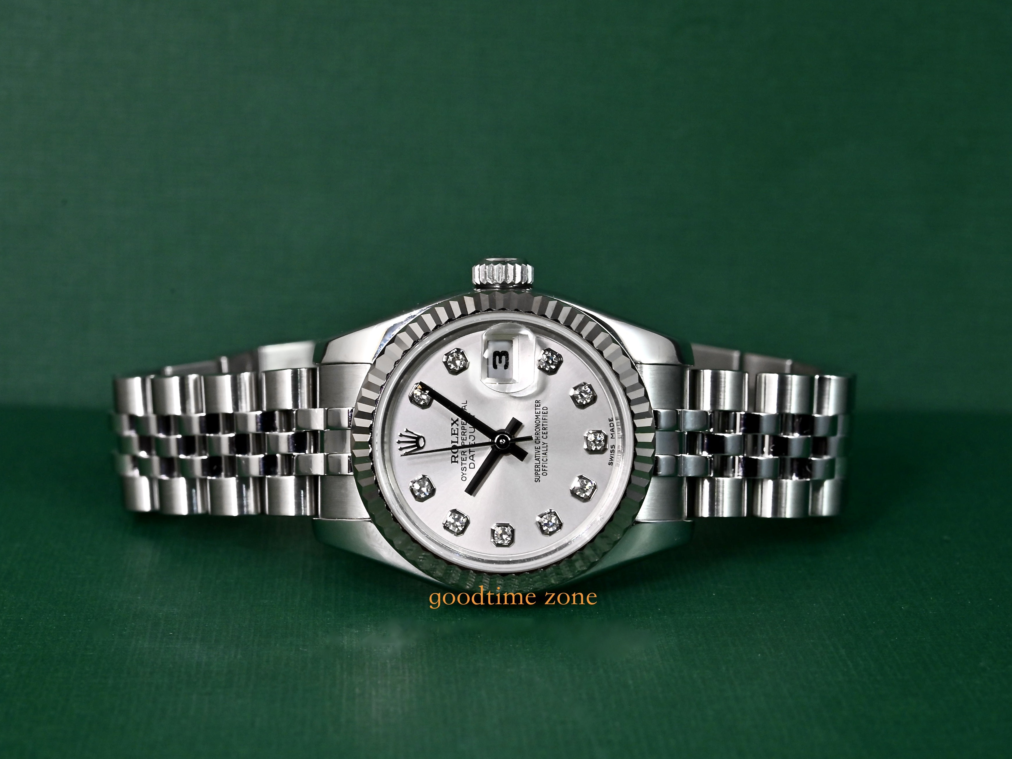 不鏽鋼材質、原裝包台10鑽紀念面盤、Jubilee 五銖鍊帶