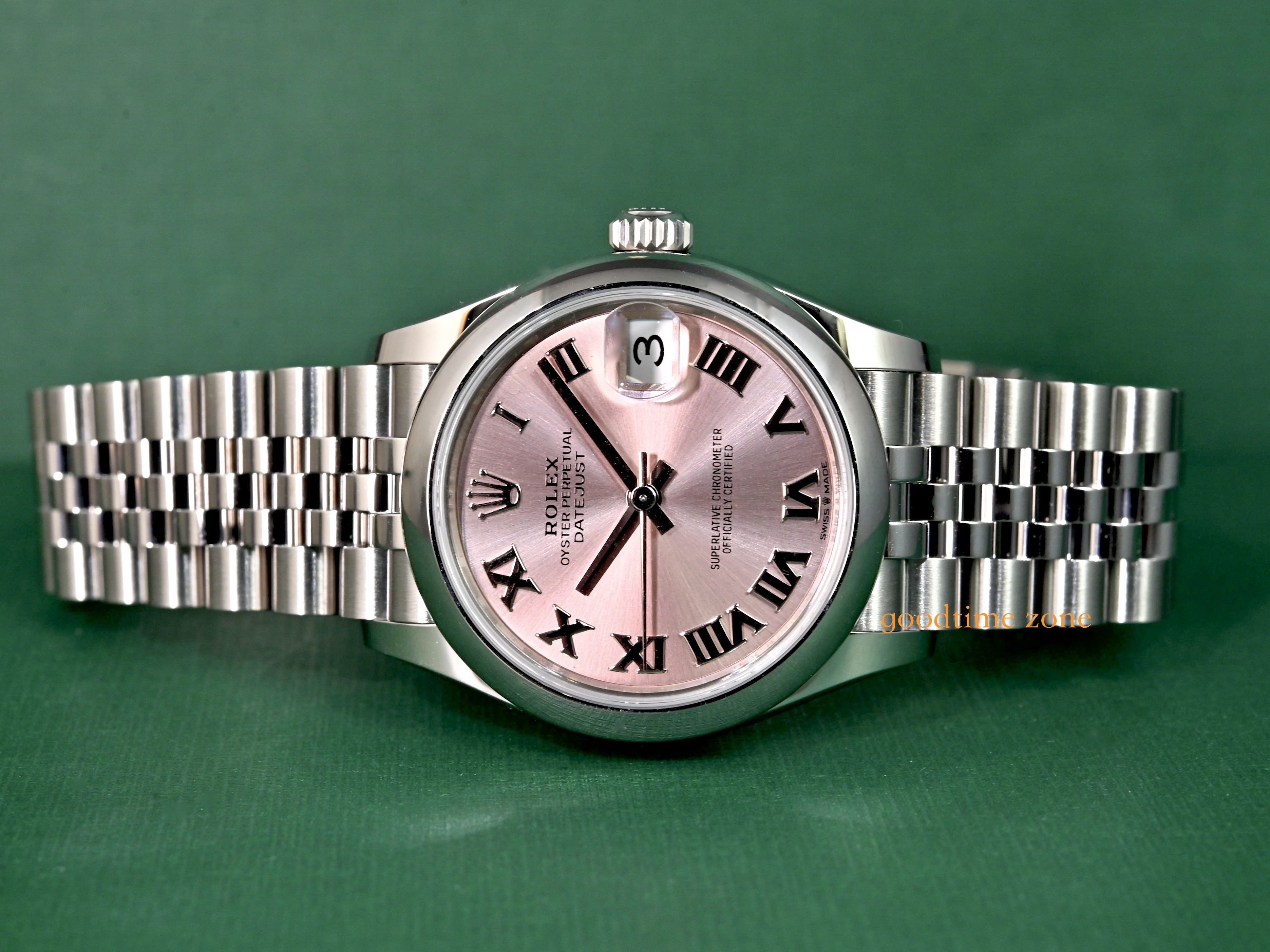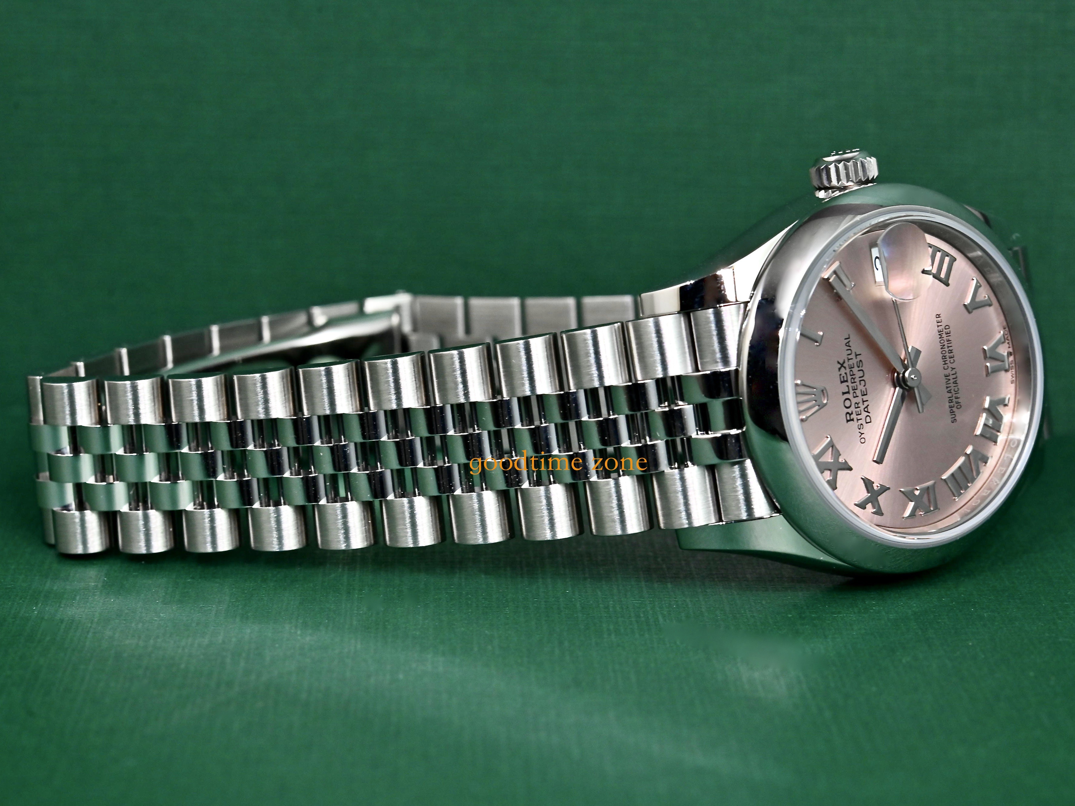 不鏽鋼材質、粉紅色羅馬數字面盤、Jubilee五銖鍊帶
