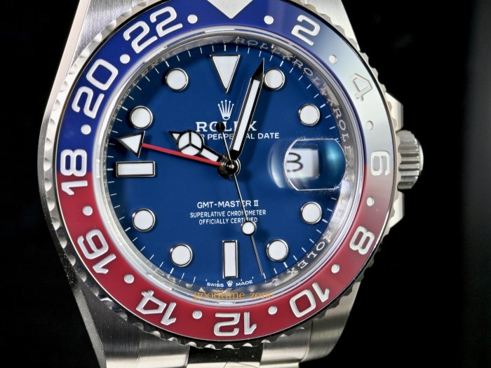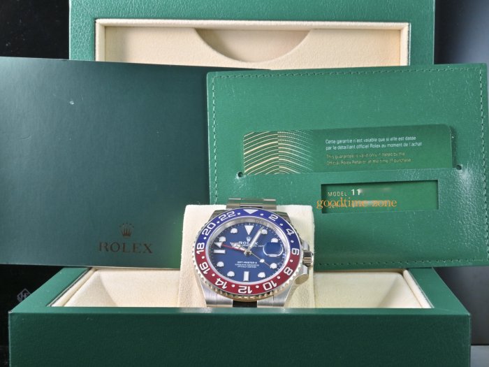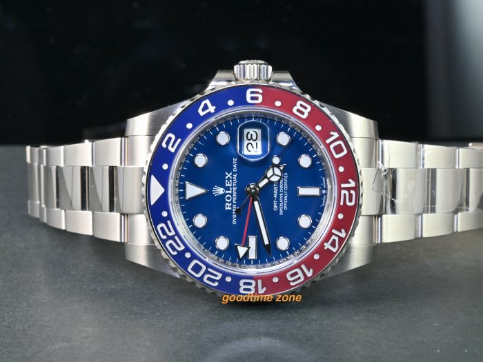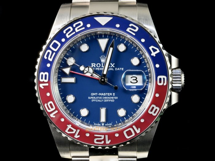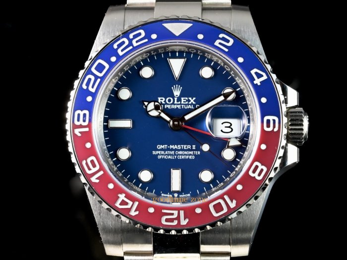 Cal.3285自動上鍊機芯、時,分,秒針指示、GMT第二地時間指示、放大日期窗顯示、動能70小時、防水100米