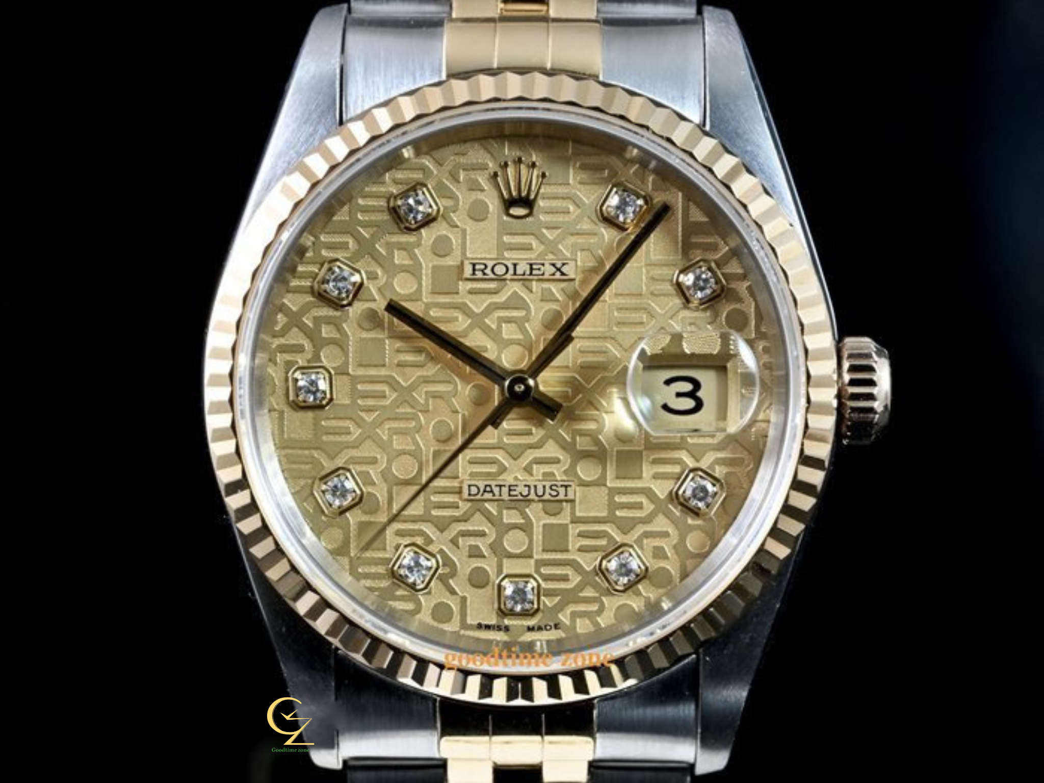 18黃K金+不鏽鋼材質、原裝包台10鑽紀念面、藍寶石水晶玻璃