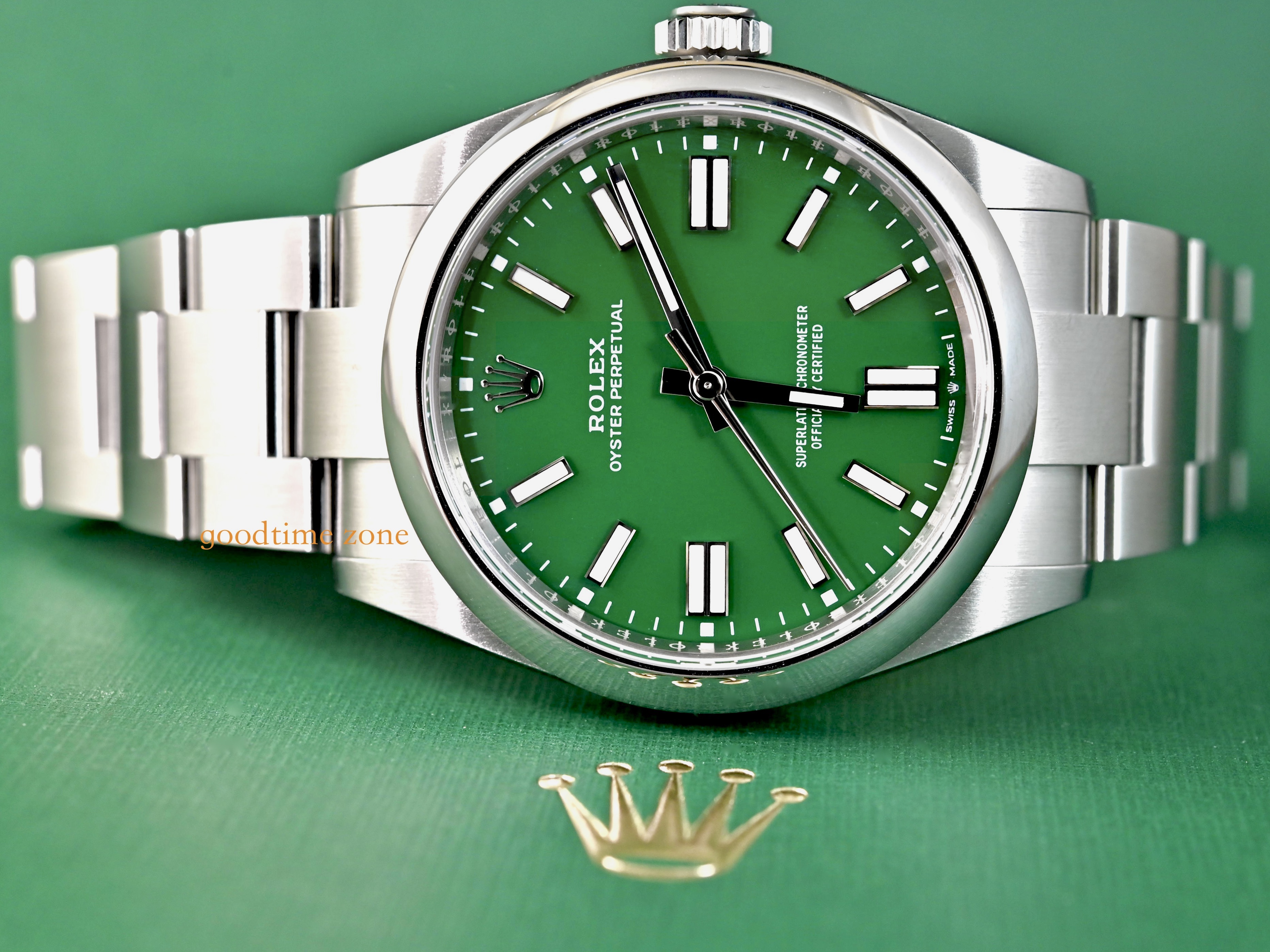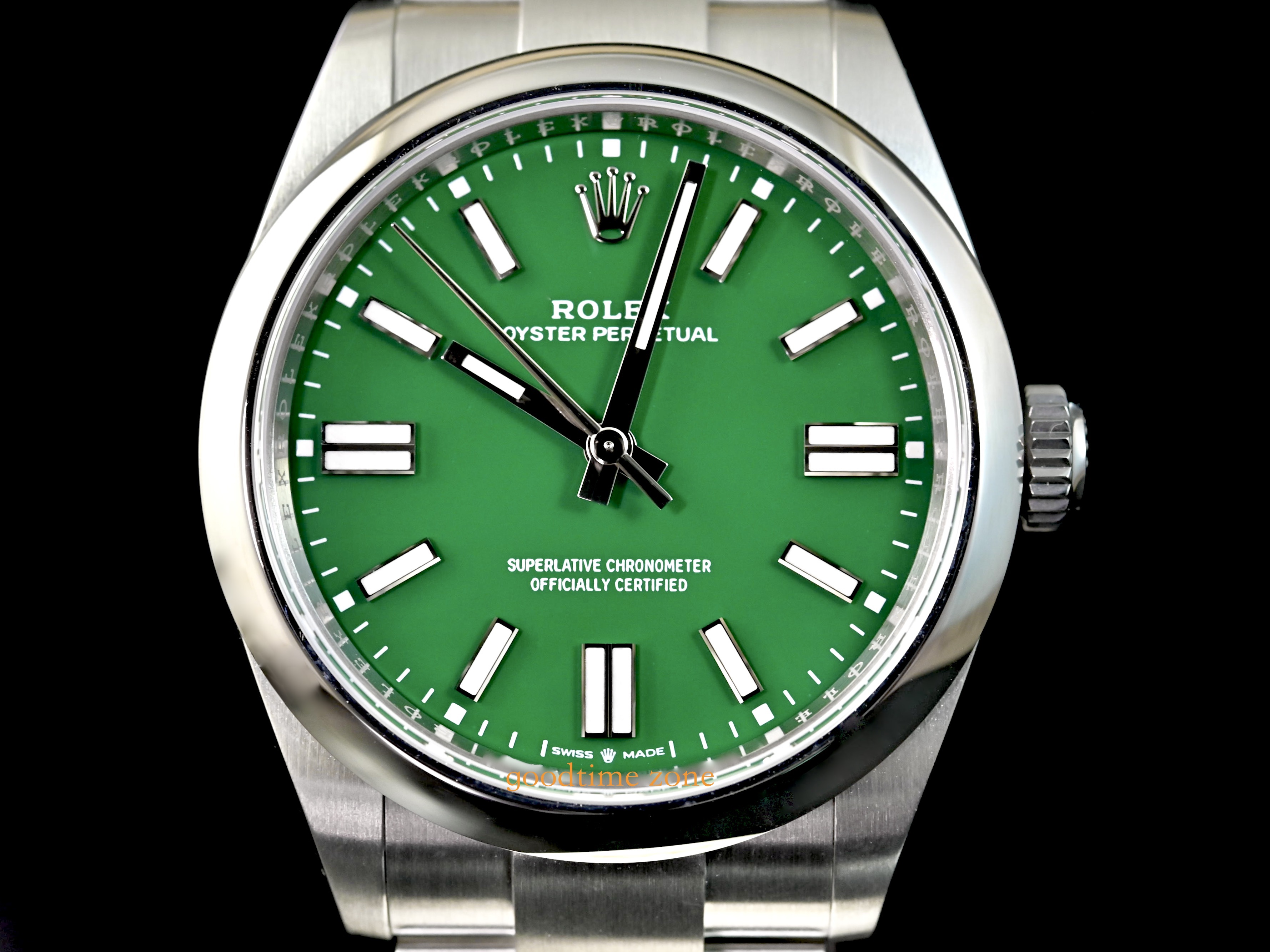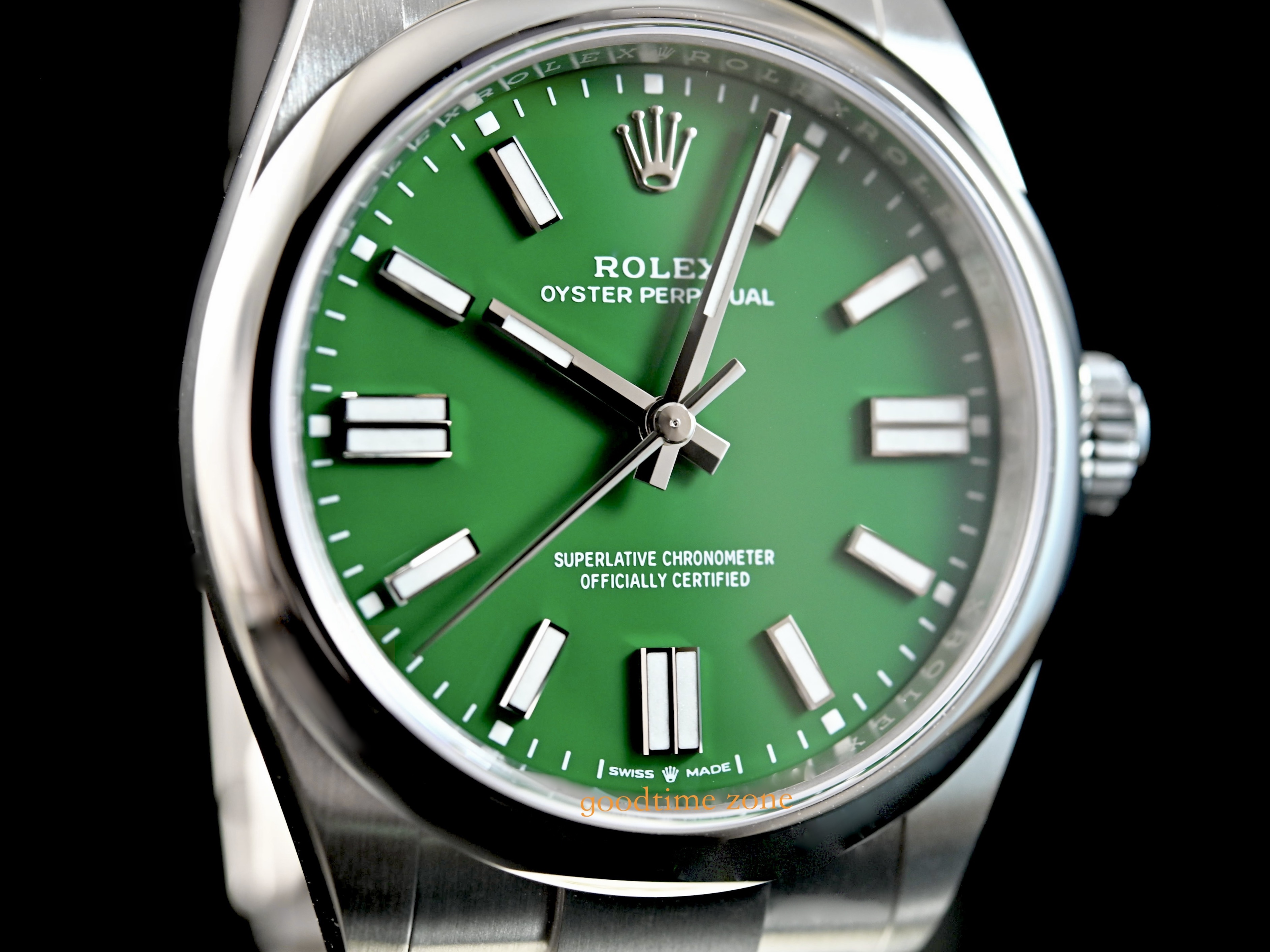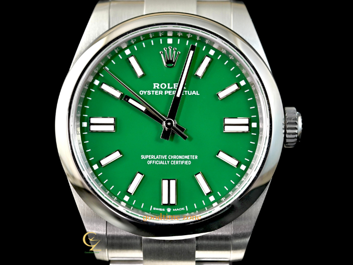 Oyster Perpetual 41mm新款在錶殼設計上做了點微調(型號從124300改為134300) 錶耳變得比較修長、錶冠加大,使外觀的線條更俐落更便於操作