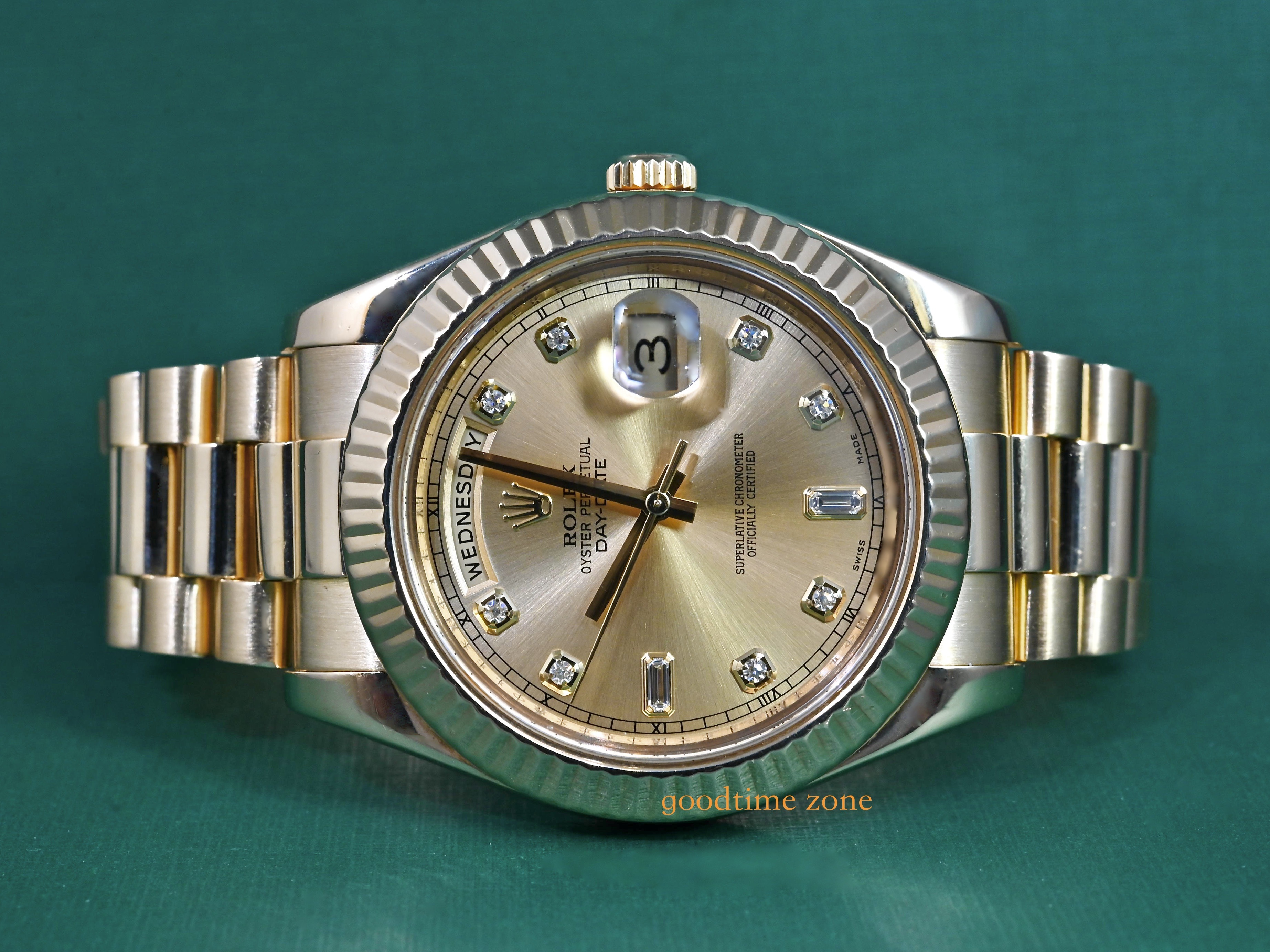 18K黃金材質、原裝包台10鑚面、藍寶石水晶玻璃