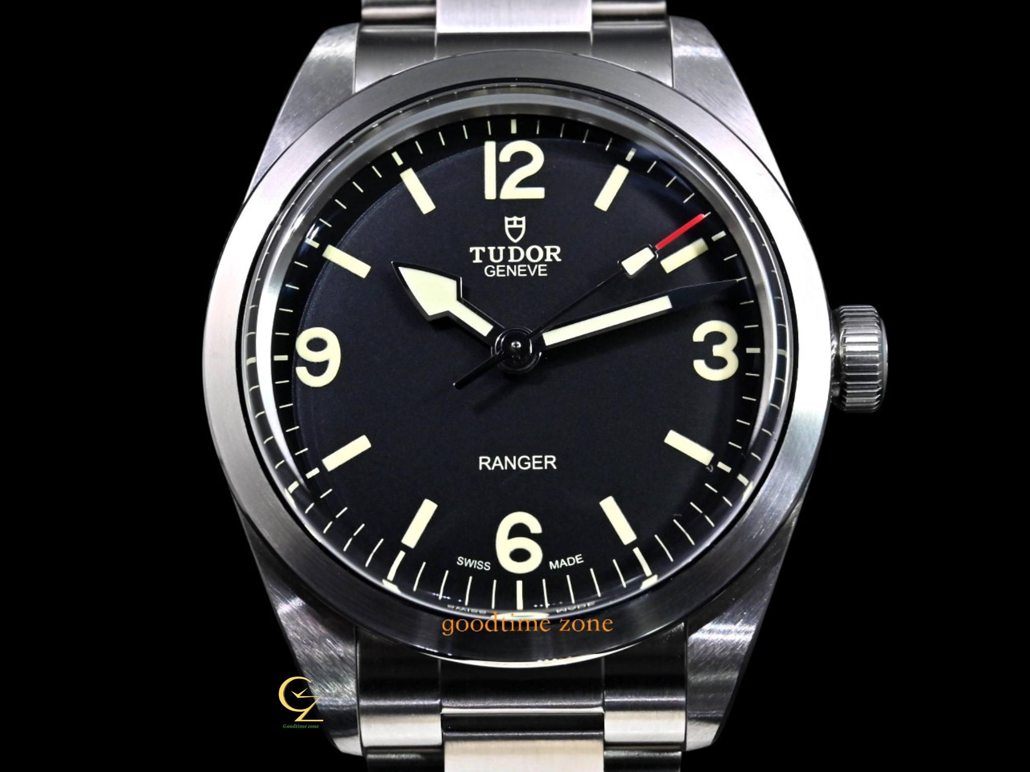 磨砂鋼材質錶、啞黑色粒紋面、紅色秒針