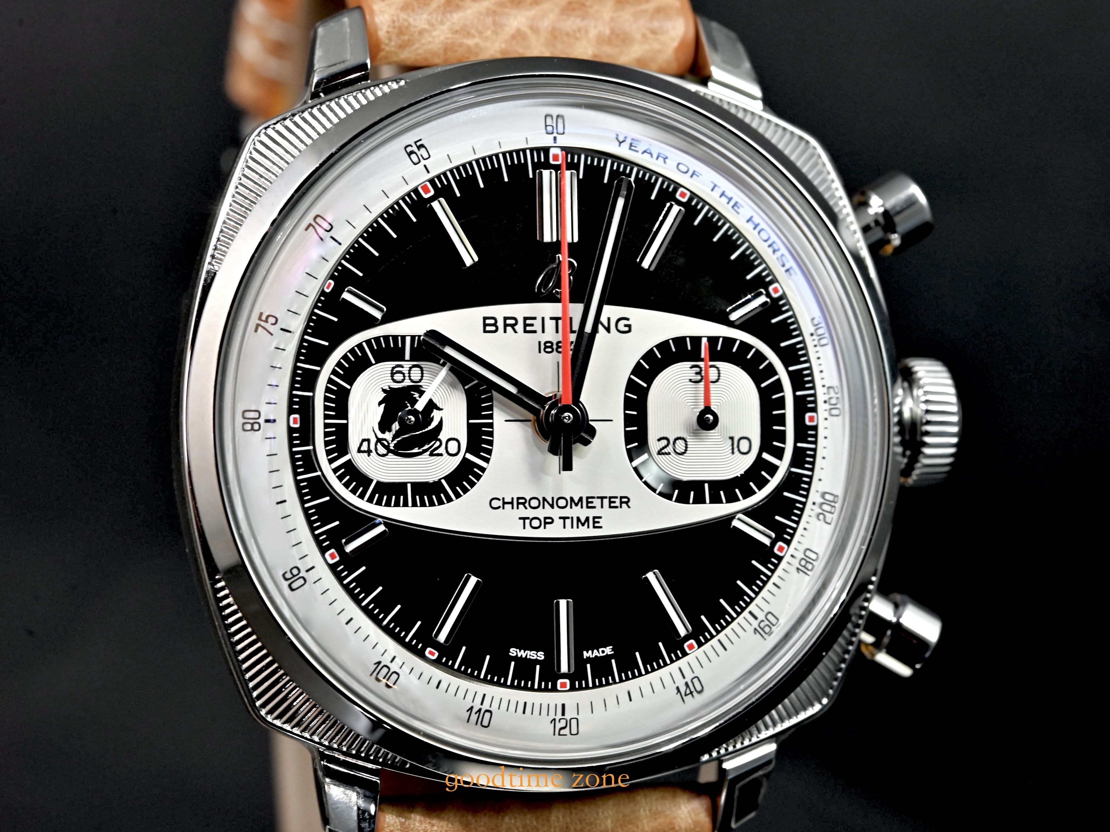 呼應2026生肖馬年,Breitling最新發表Top Time B01 Shadow Rider夜影黑駒馬年限量版計時腕錶,不鏽鋼材質的枕形錶殼錶徑38mm,9點鐘位置錶盤裝飾夜影黑駒的頭部側影,彷彿正在揚蹄馳騁、破風前行,限量288只。尾數帶著「發」的吉祥寓意 錶盤中央的白色橢圓色塊,源自Breitling歷史檔案的「儀表板」,兩枚計時小錶盤採方圓設計,30分鐘計時針與中央計時秒針以象徵速度與激情的紅色點綴,錶盤12點至2點之間有著「YEAR OF THE HORSE」字樣,金屬實底蓋並刻有與小錶盤相同的駿馬頭部側影。錶款的黑白主調,搭配充滿型格的米色穿孔賽車風格小牛皮錶帶,將現代製錶技術與1960年代復古設計巧妙揉合,為熱愛速度與風格的腕錶藏家打造