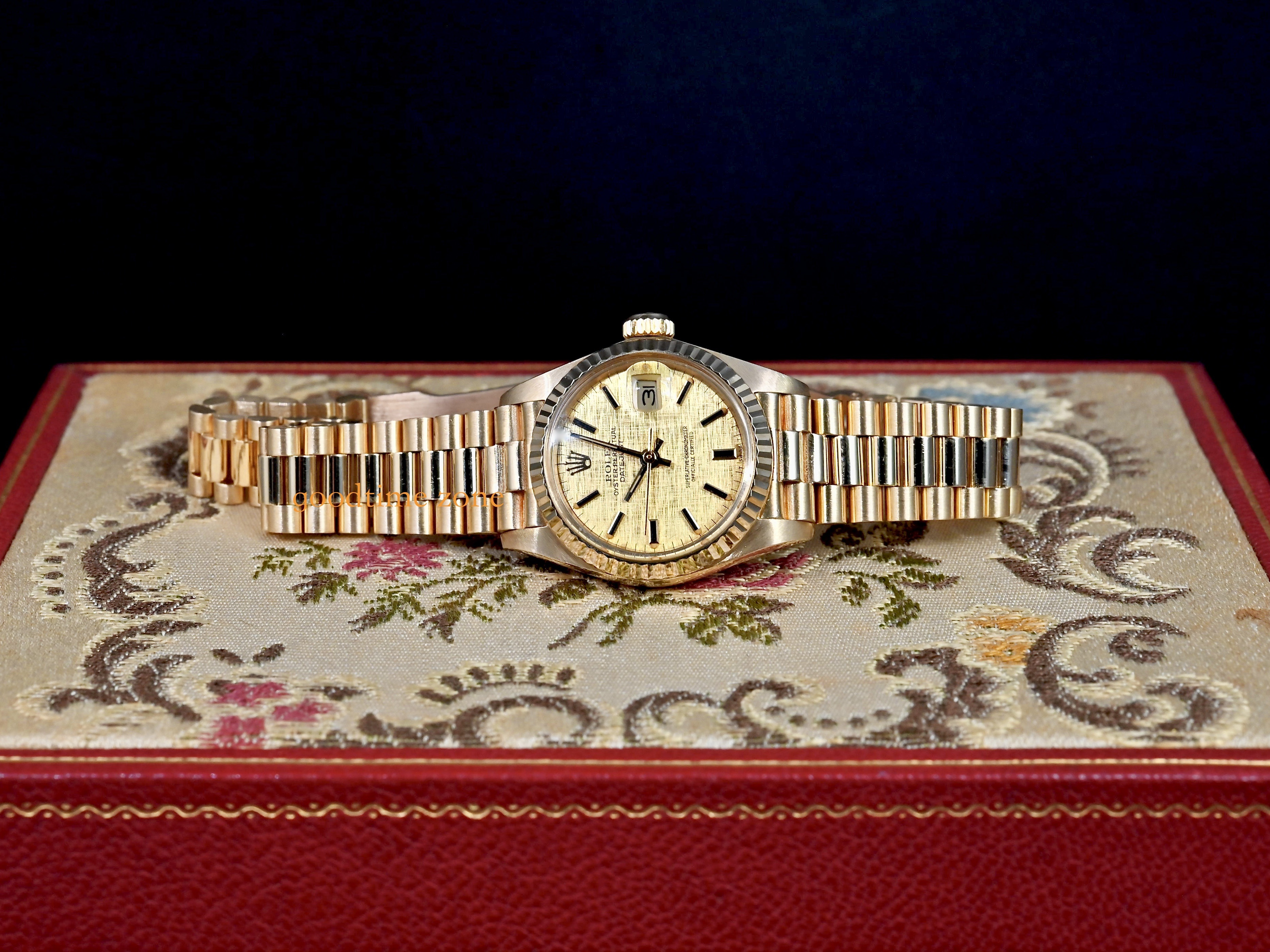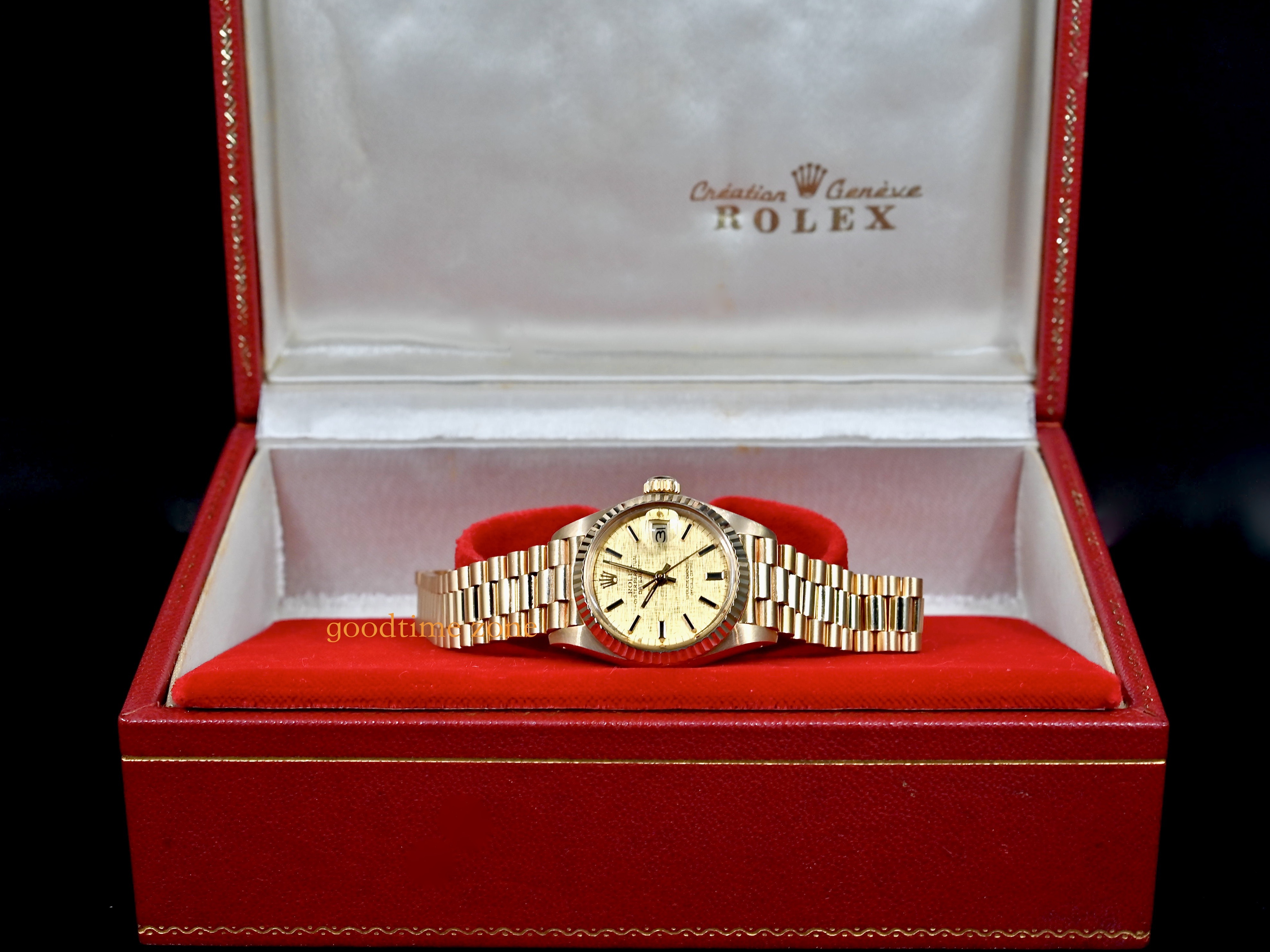 18黃K金材質、原裝布紋面 、壓克力玻璃