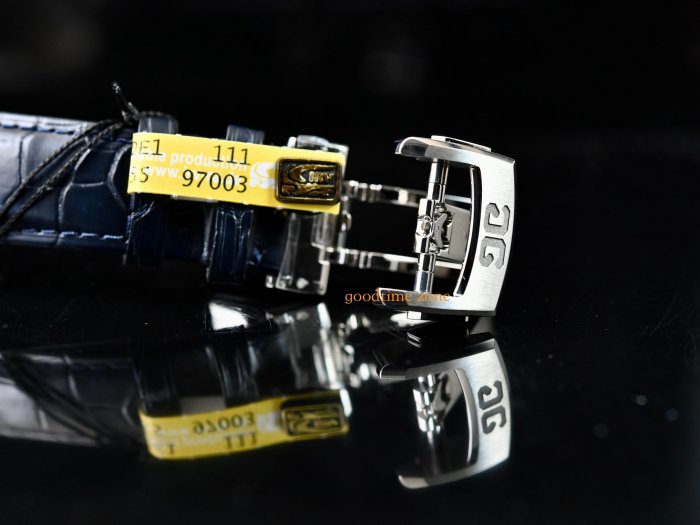 Cal.90-02自動上鍊機芯、時,分,小秒針指示、大日曆窗顯示、偏心月相、動力儲存42小時、防水50米