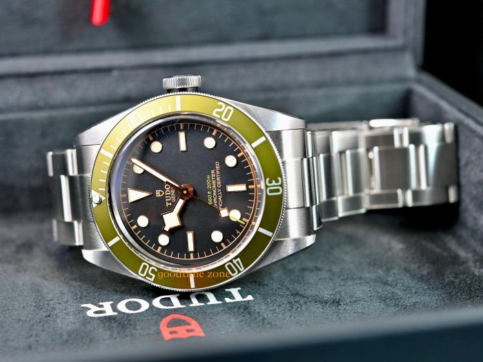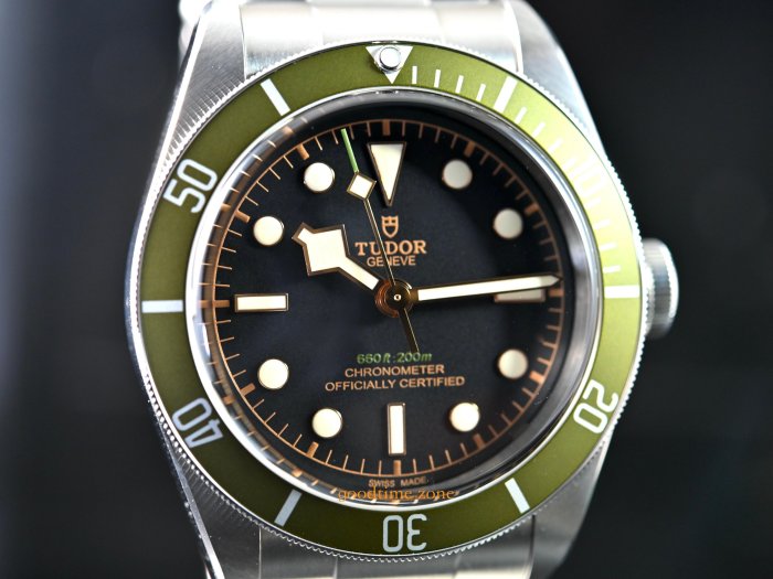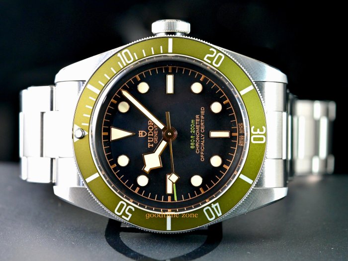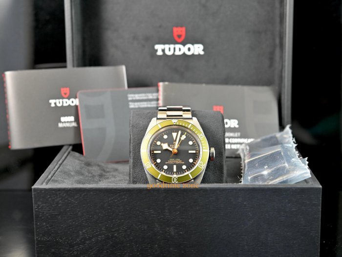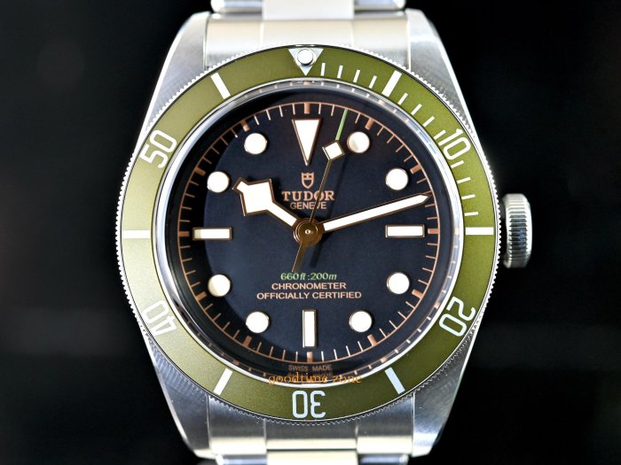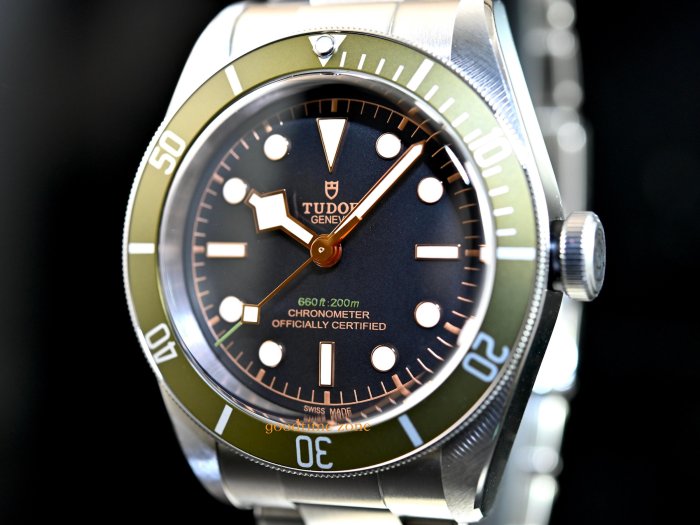 Heritage Black Bay Green於2017年10月推出,是為倫敦Harrods設計的特別版。它的錶盤上有綠色表圈和插入的綠色文字。背面刻有Harrods'H'和序列號 TUDOR 帝舵是勞力士的副牌,ROLEX 勞力士的創始人漢斯.威爾多夫(Hans Wilsdorf,1881-1960) 於1946年3月6日宣布創立" Tudor Watch Company "此消息不僅代表TUDOR 帝舵的誕生,同時也確立了品牌的經營策略