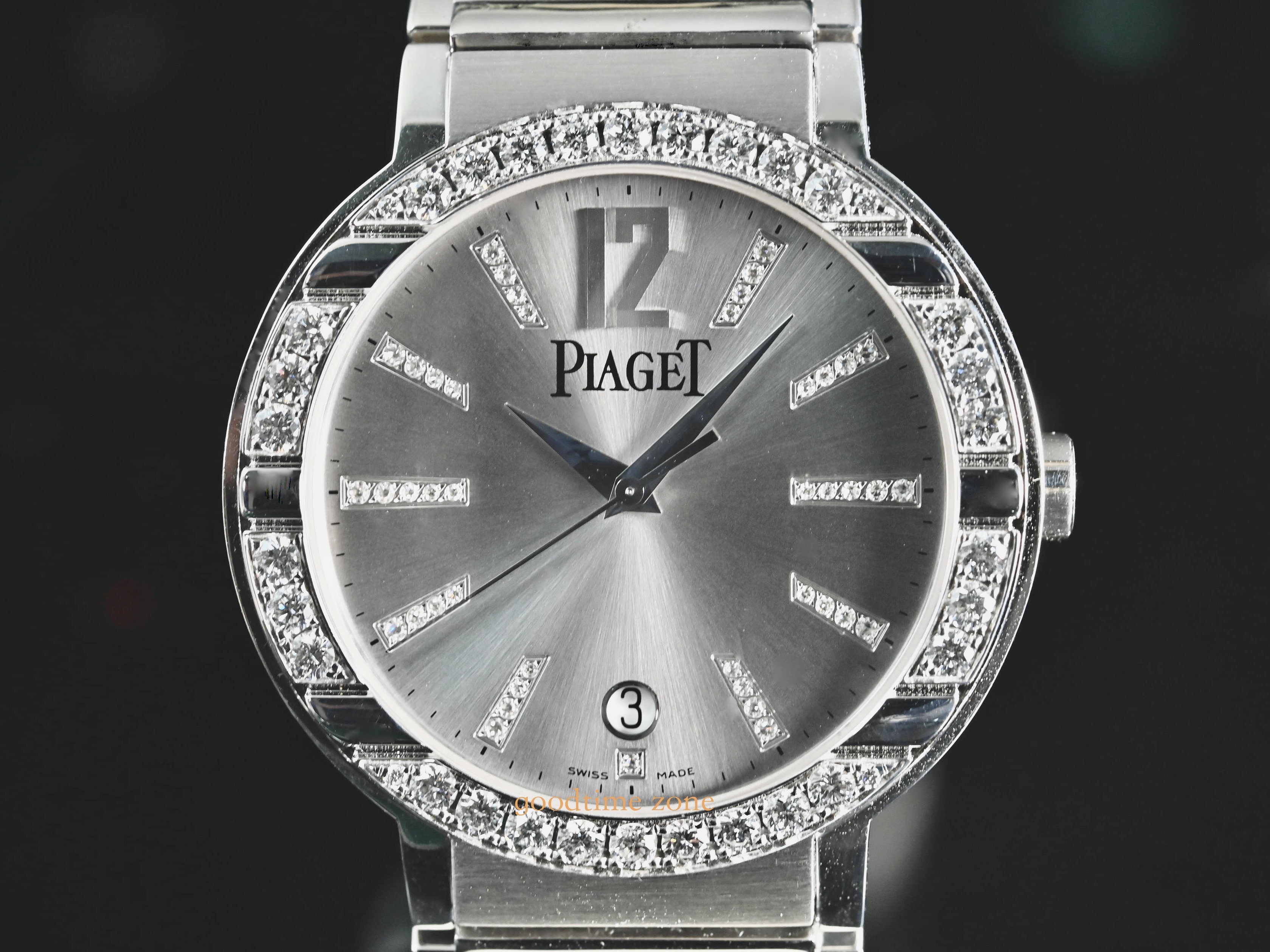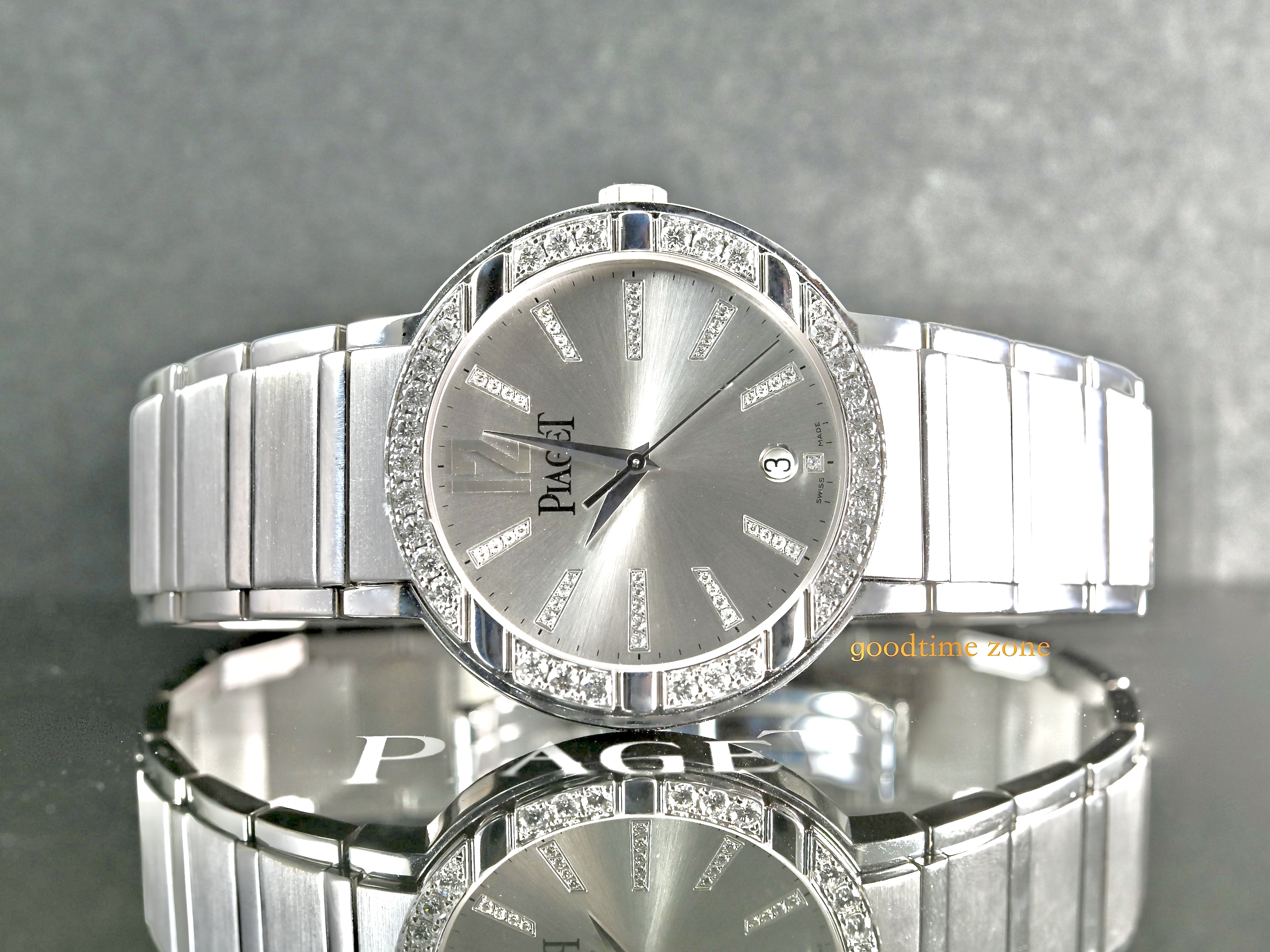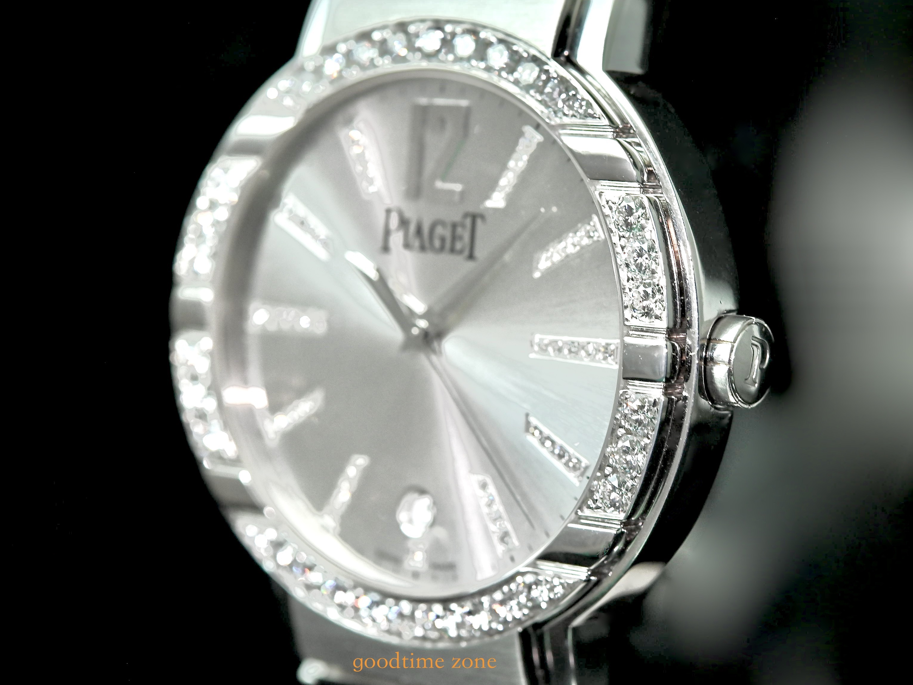 18白K金材質、原鑲鑽錶、藍寶石水晶玻璃